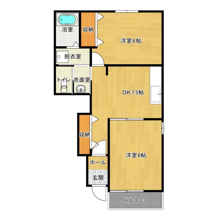 収納が多く広めの2DK。シャワートイレ、TVドアホン付。