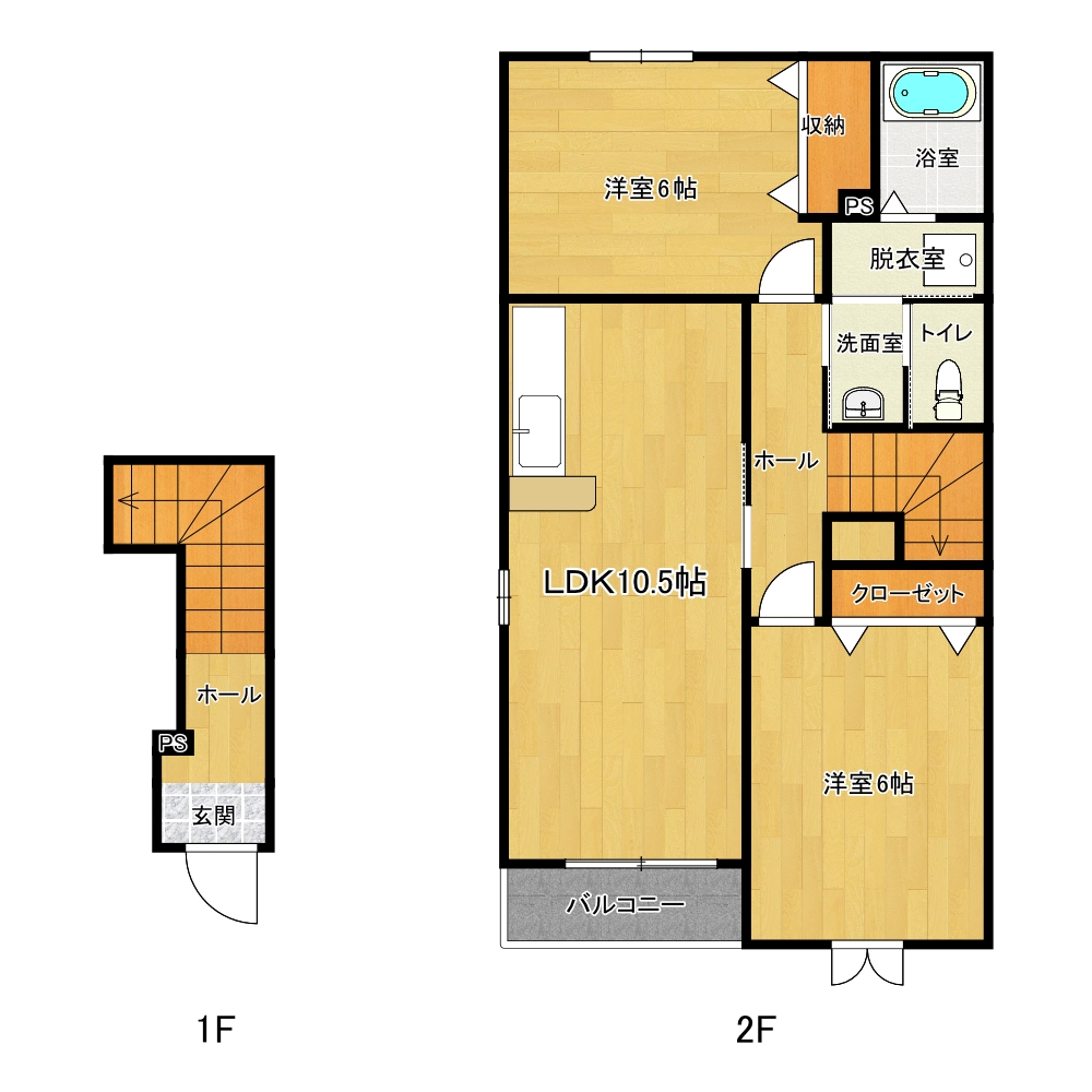 | 間取り内訳 | 洋6、洋6、LDK10.5 |